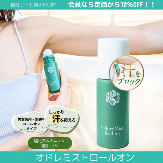 商品説明 オドレミストは、塩化アルミニウム13%配合の制汗・防臭剤です。