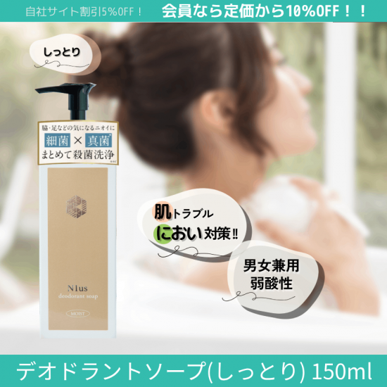 | 使用方法 | 適宜、適量を水又はぬるま湯で泡立てた後、皮膚を洗浄し、水又はぬるま湯で洗い流してください。 ■デリケートゾーンのニオイ・ムレが気になる時、生理中の不快な時に デリケートゾーンに使用する場合はゴシゴシ洗わず優しくなでるように洗いましょう。生理中など、特にニオイが気になる時だけ使用するのも効果的です。 ■足のニオイでお困りの方に スポーツやトレーニングで運動靴を履く方、仕事で革靴やパンプスを一日中履いてよく歩く方、思春期のお子さんの足のニオイに困っている方、冬にブーツを履くと人前で脱げない方、サウナや銭湯など不特定多数の人が利用する場所を素足で利用する方 足の指の間までしっかり洗って、しっかり洗い流しましょう。洗った後は指の間の水分もしっかりふき取りましょう。しつこい足のニオイは一度では殺菌できない場合もありますので効果を実感できるまで毎日しっかり洗いましょう。洗浄後は当店オリジナルの制汗剤「オドレミスト」や「アルムミスト」を使用すれば日中の汗やにおいを防ぐことができるので更に効果的です。 ■にきび・ふきでものでお悩みの方に 長引くマスク生活、マスクの中は蒸れると雑菌等が繁殖しやすくなり、にきびや吹き出物ができやすくなります。ニキビの原因であるアクネ菌や炎症の原因となるカビ(真菌)を殺菌しましょう。洗顔時はゴシゴシ擦らず、手で泡立ててから優しく洗い、しっかり流しましょう。 ■ワキのニオイ、体臭、加齢臭など体のニオイ対策に 制汗剤「オドレミスト」「アルムミスト」をご使用中の方はぜひ、使用前の入浴やシャワーで気になるところをこのデオドラントソープでしっかり洗ってください。殺菌された清潔な肌に制汗剤を使用することで更に効果が高まります。 ■毎日の手洗いに 体質にもよりますが手のひらは足の裏同様、汗をかきやすい場所。ダブルの殺菌成分配合なので知らず知らずのうちに手に不着した細菌・真菌もしっかり洗浄できます。さっぱりとした洗い心地でサラサラとした手に♪ ■オムツかぶれしやすいデリケートな赤ちゃんのおしりに 一日中オムツを履いている赤ちゃんのお尻は汗でムレるうえに、尿や便がついたりするので思った以上に肌が汚れています。赤ちゃんのおしりは皮膚が薄くデリケートなのでゴシゴシ擦ることなく、優しくなでるように洗ってあげましょう。 ■高齢者のスキンケアにも 介護を必要とされる方で紙おむつを使用している場合は、カンジダ菌に悩まされる方も多くいるのではないでしょうか。カンジダ菌はカビ(真菌)の一種ですが、防カビ成分のミコナゾール硝酸塩配合のこのソープならばしっかり殺菌してくれます。陰部の洗浄にこちらのデオドラントソープを使用することをおすすめします。 また、高齢者の50%以上が感染していると言われる白癬菌もカビ(真菌)の一種ですが、こちらもしっかり殺菌しますので、足を清潔に保つためのフットケアとしてぜひご使用ください。 |